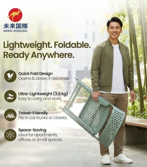 持ち運びやすさ・耐久性・使いやすさを一つのスマートなデザインに凝縮。素早く折りたためる機構で収納・移動が楽になり、頑丈な構造が日常使いをしっかり支えます。表面はなめらかでお手入れも簡単です。